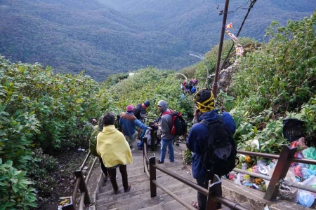 Bei unserem Aufstieg waren ca. 50% Einheimische und ca. 50% Touristen unterwegs. Die Bergspitze ist ca. auf 2.243 m Seehöhe und der Weg ist recht gut ausgebaut und im oberen Drittel mit Steinstufen und Geländern ausgestattet. Einziges Manko ist, dass die Stufen recht unterschiedliche Höhen haben. Sehr cool ist auch das man ca. alle 15 Minuten ein Tea House hat zur Verpflegung und Rast. Hier gibt es alles was man so brauchen kann an Snacks, inkl. wärmenden Tee. Denn je weiter man rauf kommt desto kälter wird es.